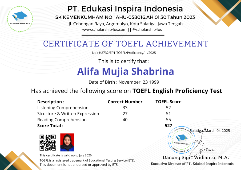 Sertifikat TOEFL-Alifa Mujia Shabrina