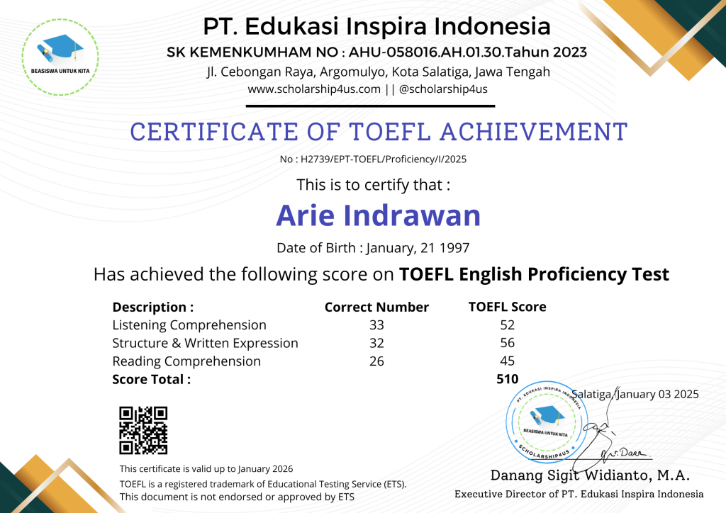 Sertifikat TOEFL-Arie Indrawan
