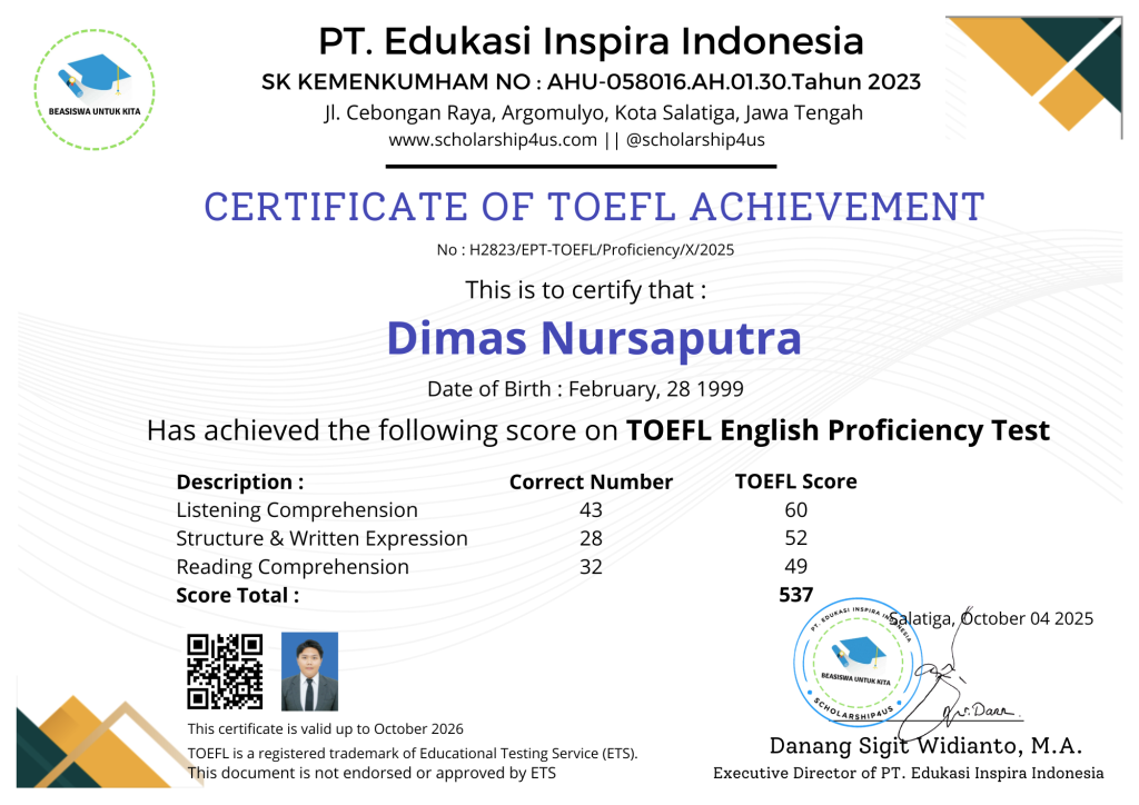 Sertifikat TOEFL-Dimas Nursaputra