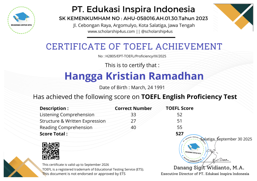 Sertifikat TOEFL-Hangga Kristian Ramadhan
