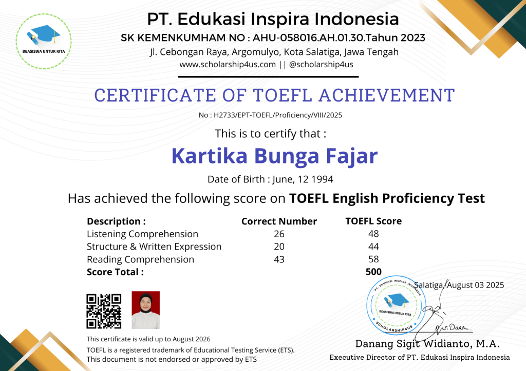 Sertifikat TOEFL-Kartika Bunga Fajar