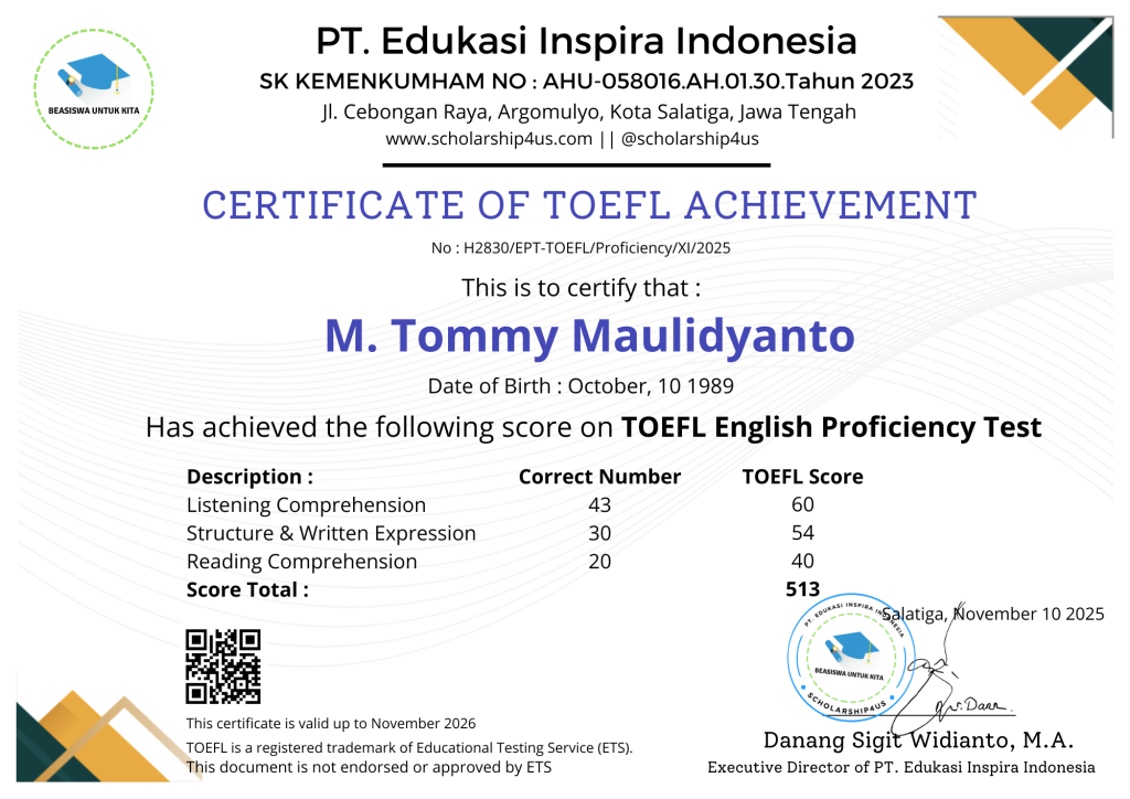 Sertifikat TOEFL-M. Tommy Maulidyanto