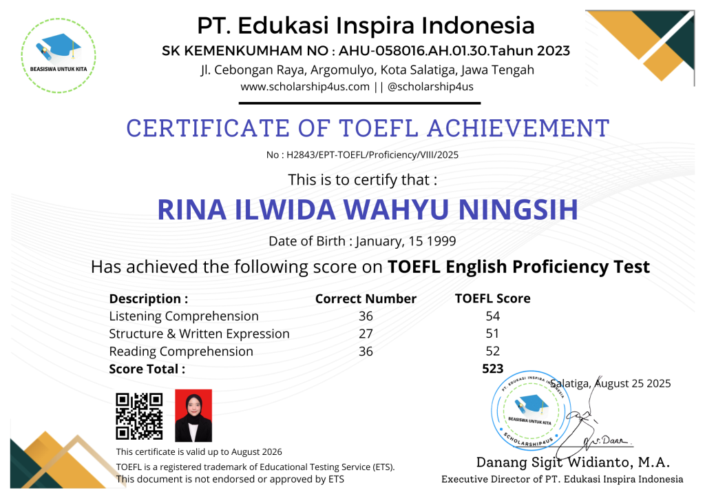Sertifikat TOEFL-RINA ILWIDA WAHYU NINGSIH